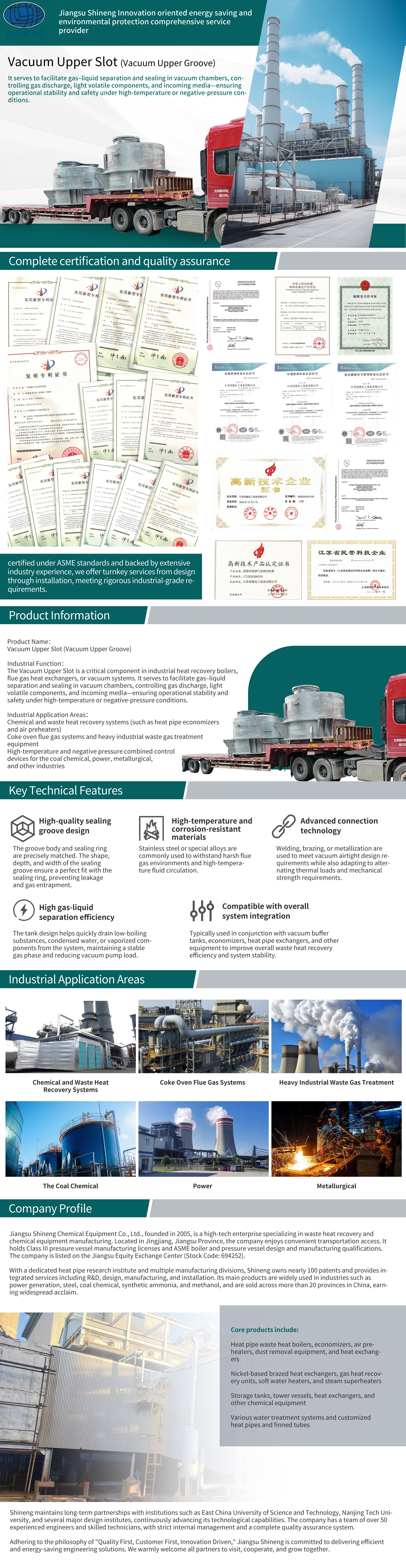 It serves to facilitate gas–liquid separation and sealing in vacuum chambers, controlling gas discharge, light volatile components, and incoming media—ensuring operational stability and safety under high-temperature or negative-pressure conditions.